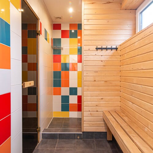 Pirties zona įrengta pirmame aukšte, tame pačiame pastate, todėl patogu pasiekti bet kuriuo metu. Čia yra priepirčio patalpa su suolu ir vieta persirengti, taip pat dušas patogiam apsiprausimui po kaitinimosi.